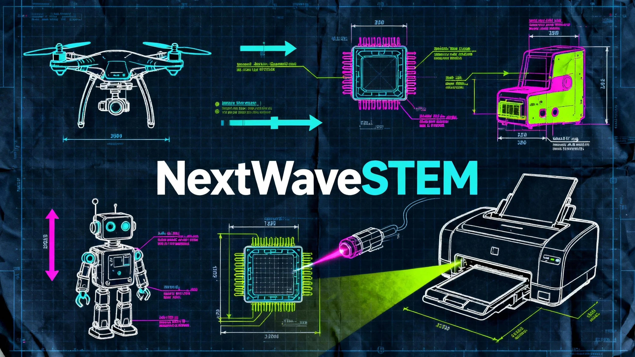NextWave STEM introduces students to the technologies shaping tomorrow: artificial intelligence, drone flight, Internet of Things (IoT), smart automation, hydroponics, and renewable energy.