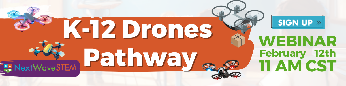 • NextWave STEM invites education leaders to a live session on February 12 at 11 am CST. The session presents the full K12 drones pathway and shows how students build knowledge step by step until they are prepared for real career environments.